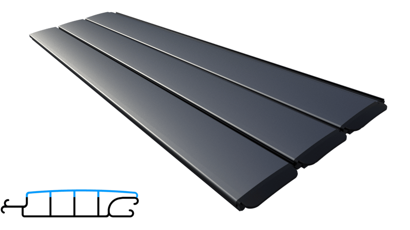 Wir bieten eine breite Farbpalette von Rollladenprofilen aus PVC (P60) und aus Polycarbonat (PC60) für Pools an, darunter transparente Profile und Solarprofile (Dreifach-Extrusion).