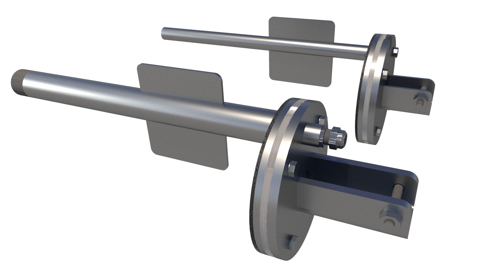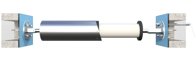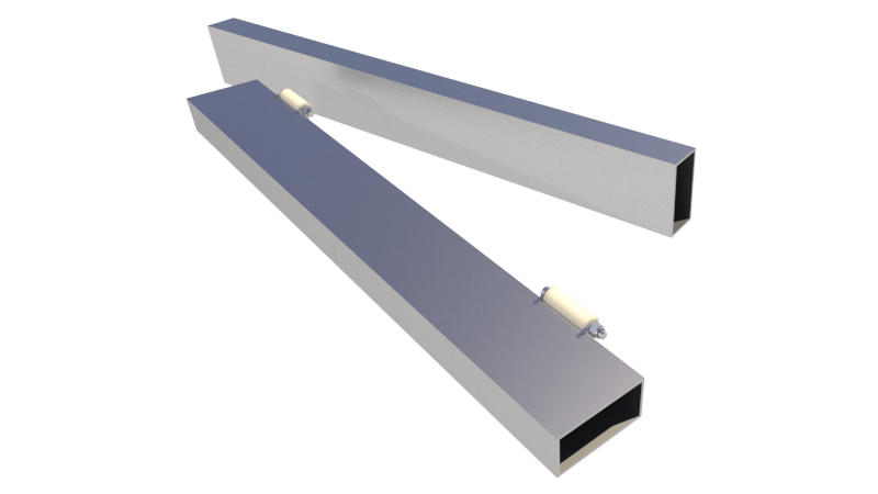 2 Trägerbalken aus Edelstahl 316L (davon einer mit Rollen) mit Befestigungen (Flansche)