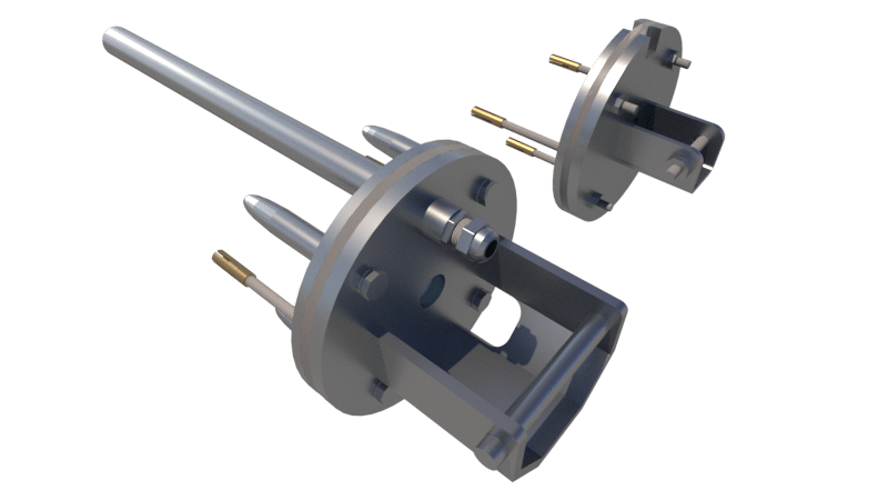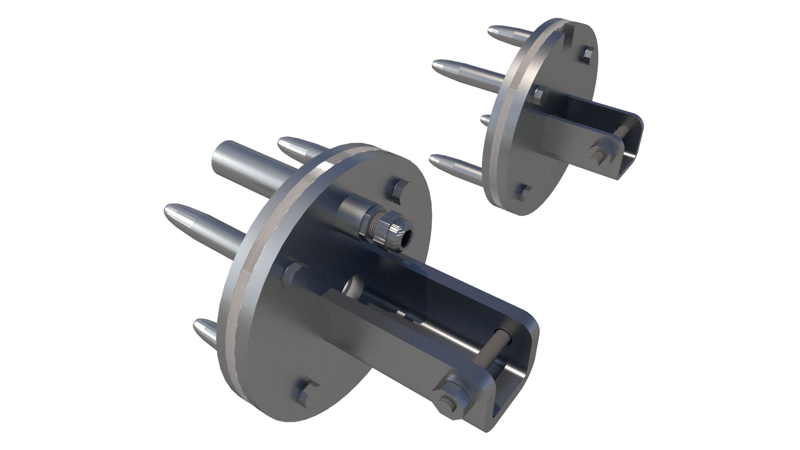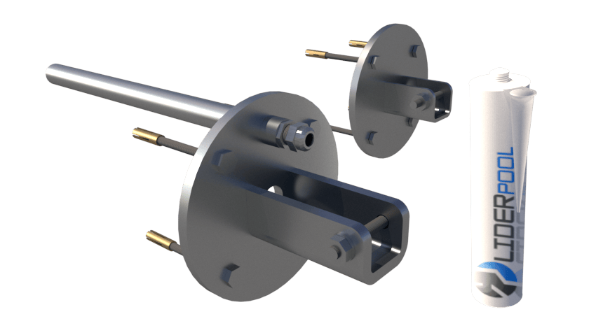 Kompletter Satz Flansche aus Edelstahl 316L mit Kabelführung durch die Beckenwand. Stehbolzen mit Gewinde, Länge 60mm.
