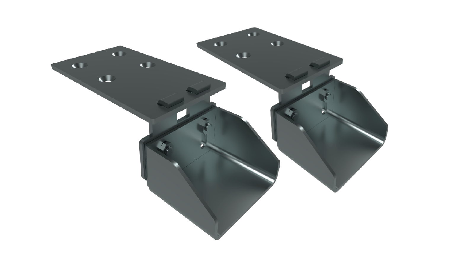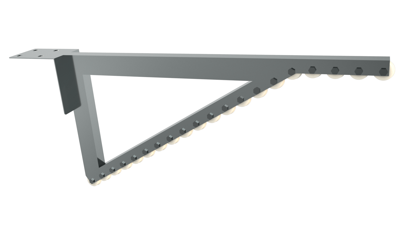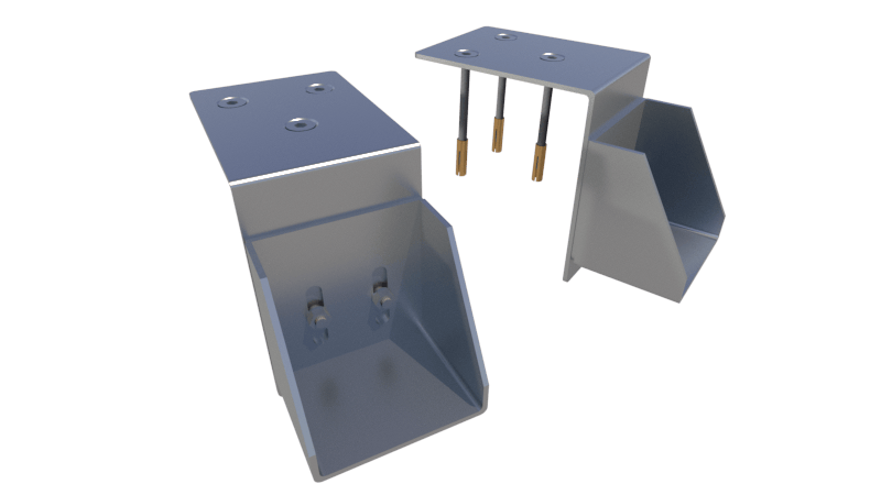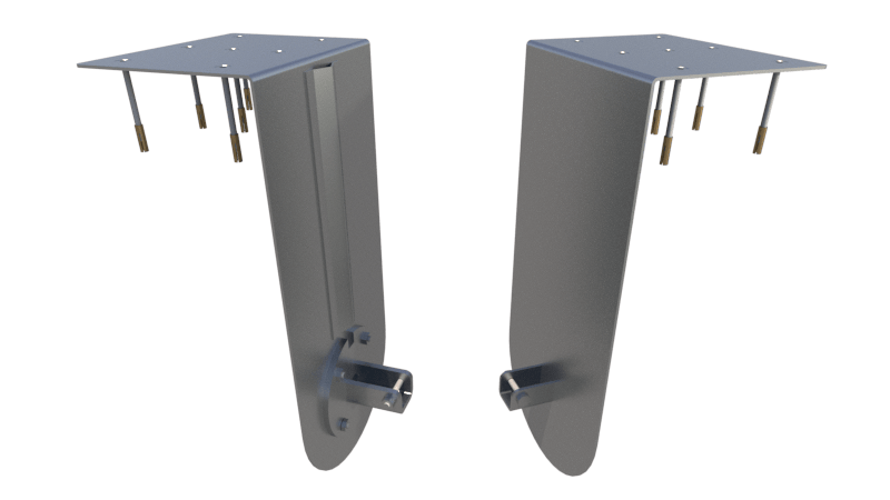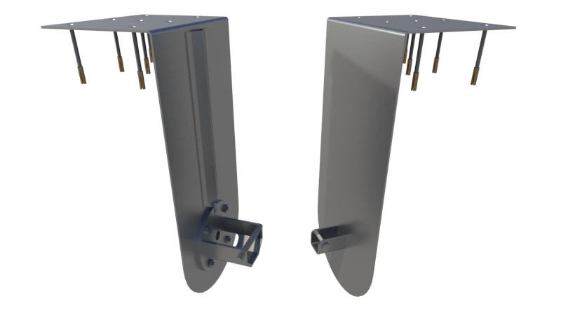Trägerbalken aus Edelstahl 316L oder Aluminium mit Stützwinkel und Befestigungen (Flanschen).