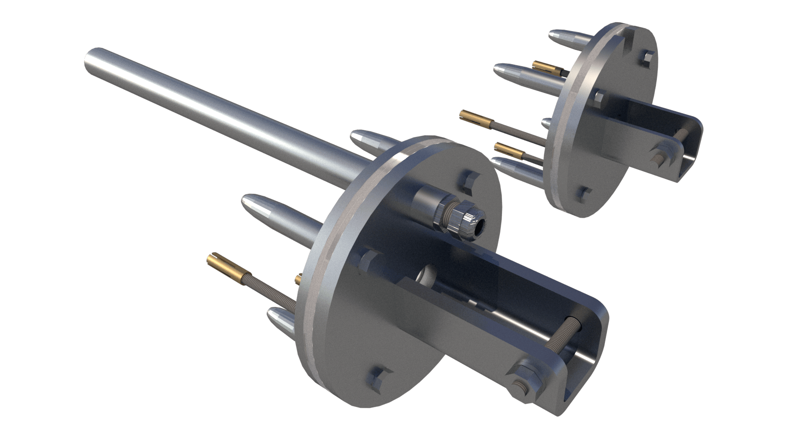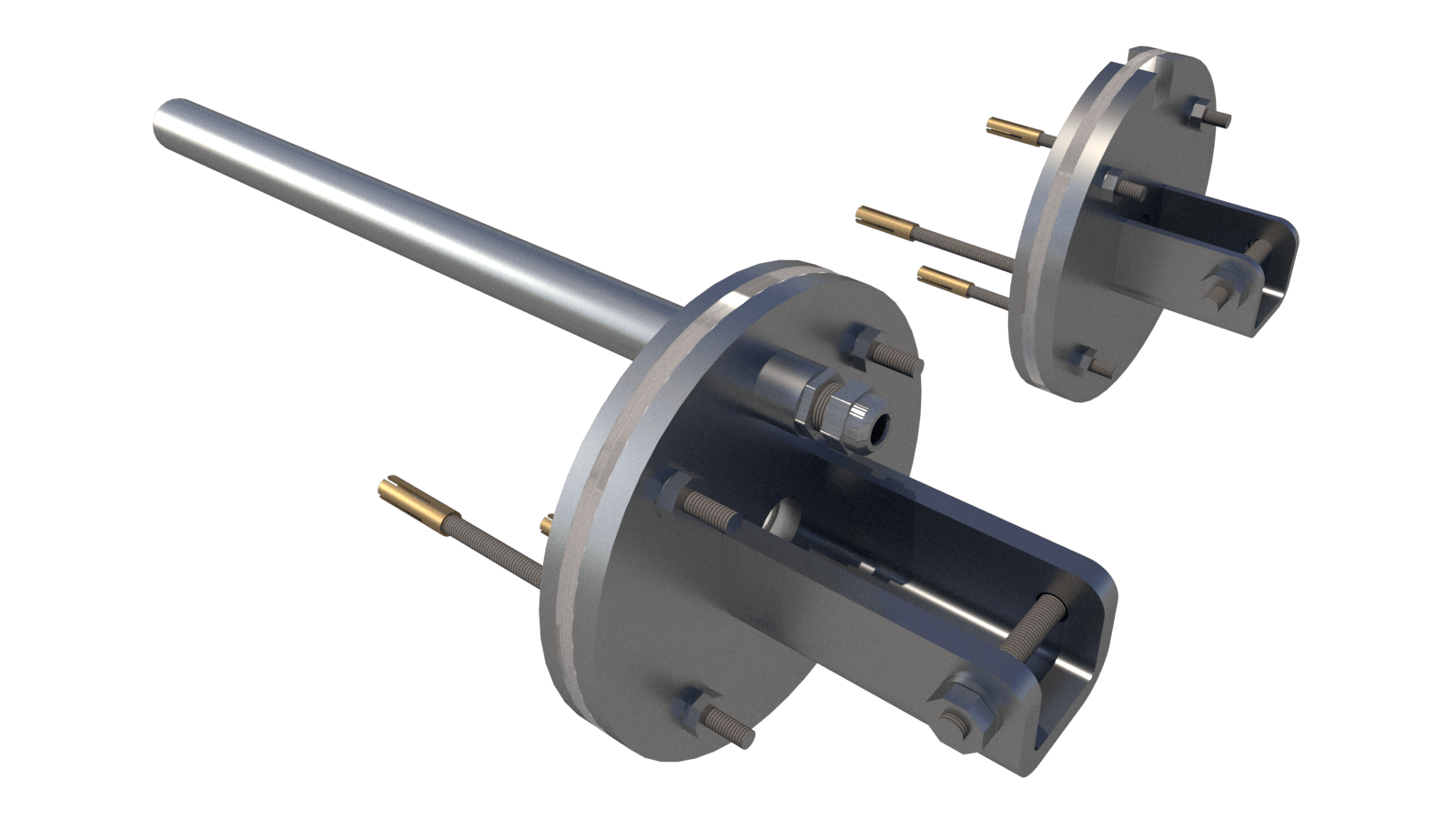 Kompletter Satz Montagebleche aus Edelstahl 316L mit Wellenhalterung und Kabelführung. Wellenachse in Tiefe von 43 cm.