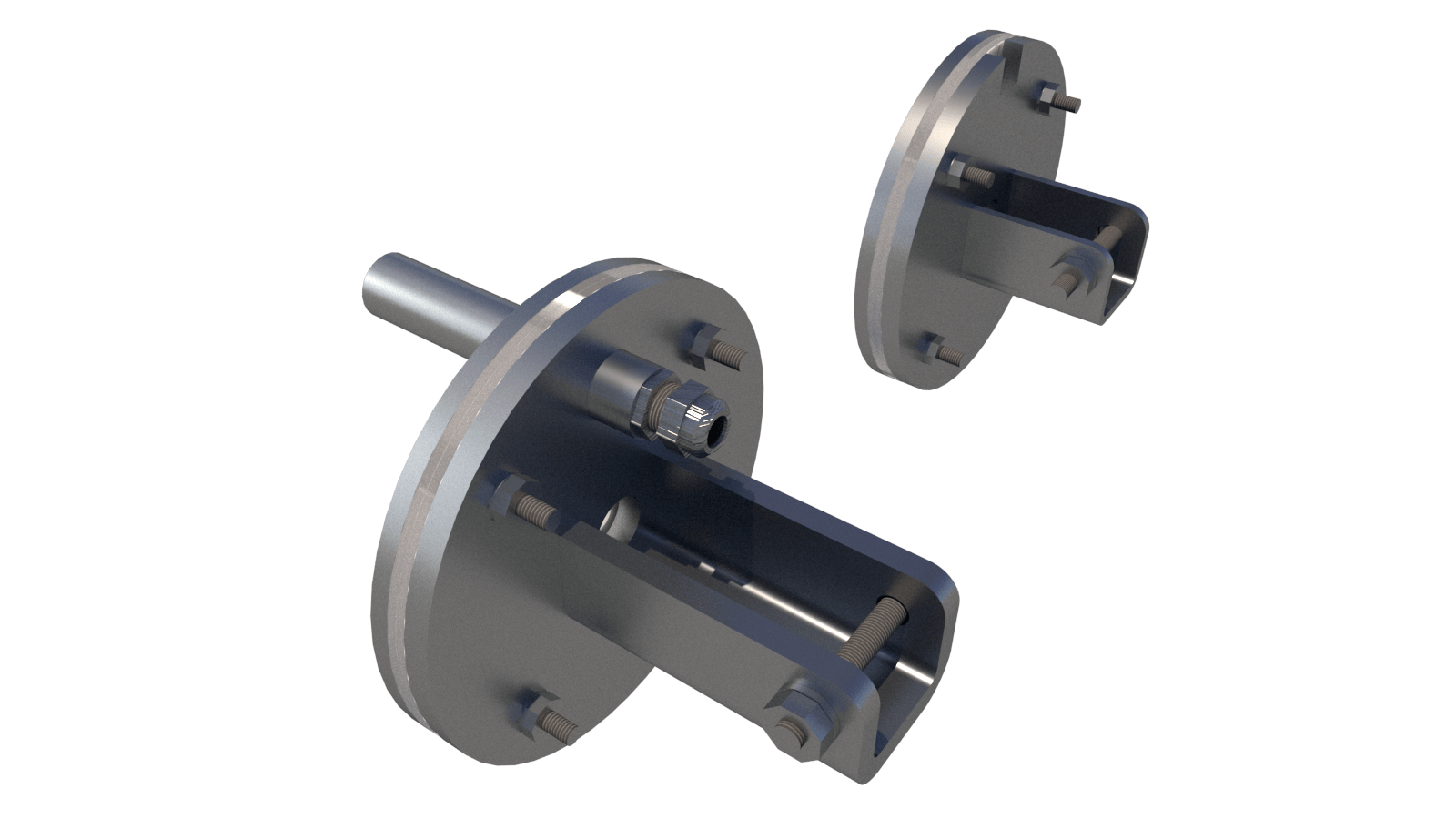 Flanschsatz aus Edelstahl mit Wanddurchführung für externen Motor