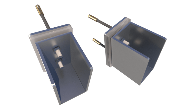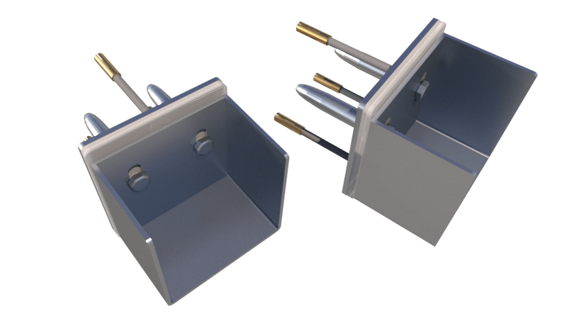 Kompletter Satz Montagebleche aus Edelstahl 316L mit Wellenhalterung und Kabelführung. Wellenachse in Tiefe von 44 - 115 cm.