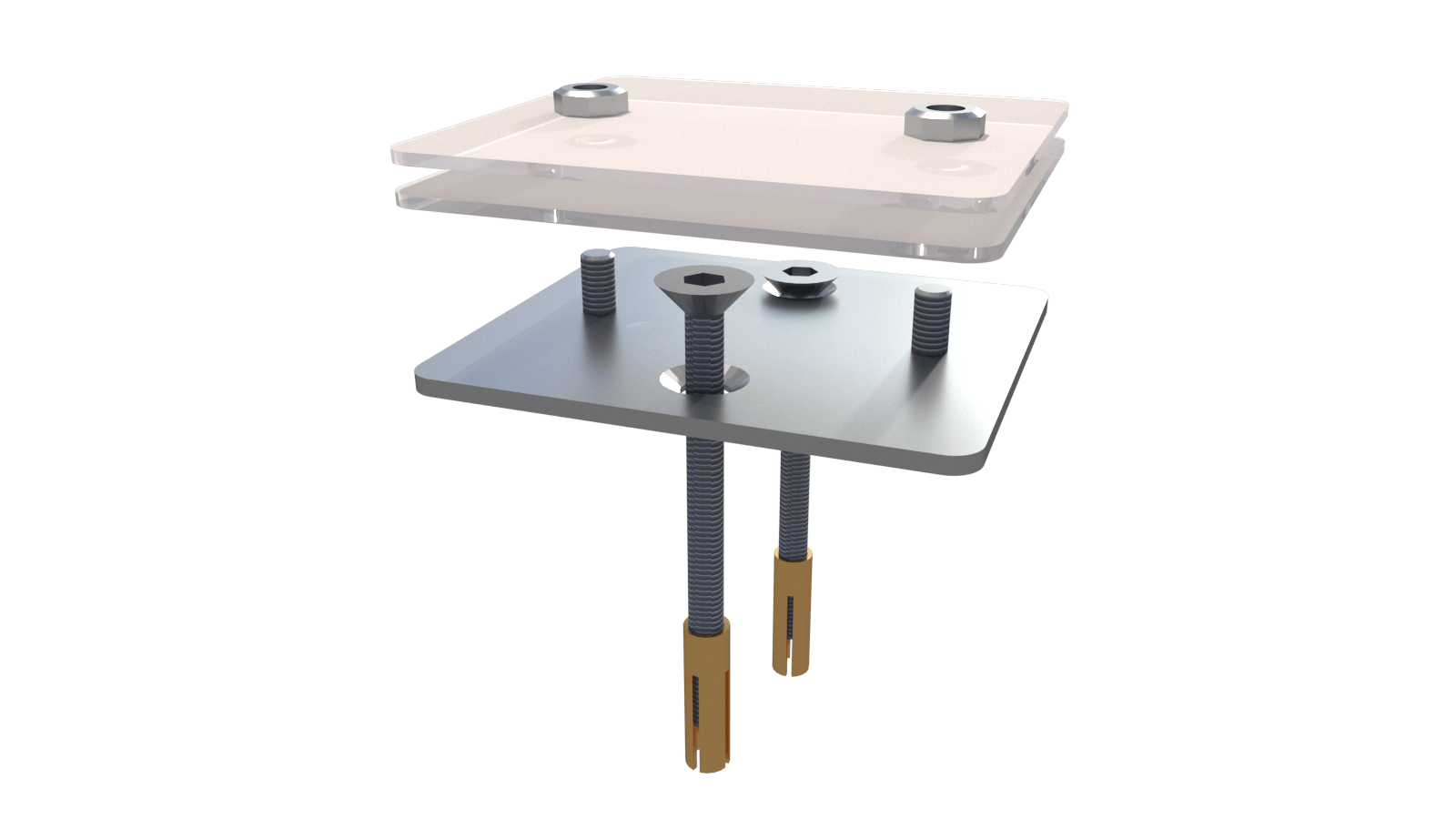 Zwei Befestigungssätze für eine Führungsrolle.