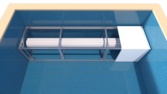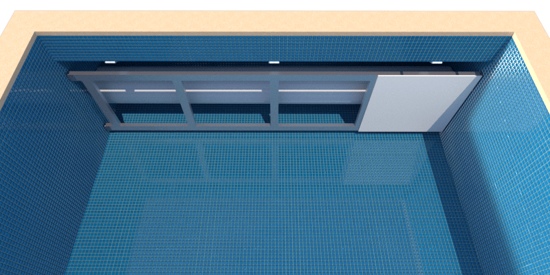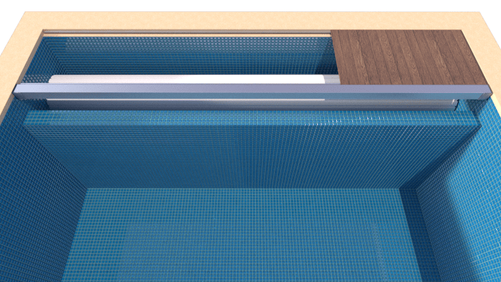Konstruktion der Abdeckung für oben liegende Rollladenkammer (Abdeckung teilweise auf dem Beckenrand)