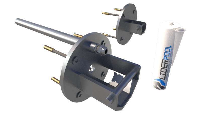 Kompletter Satz Flansche aus Edelstahl 316L mit Kabelführung durch die Beckenwand.