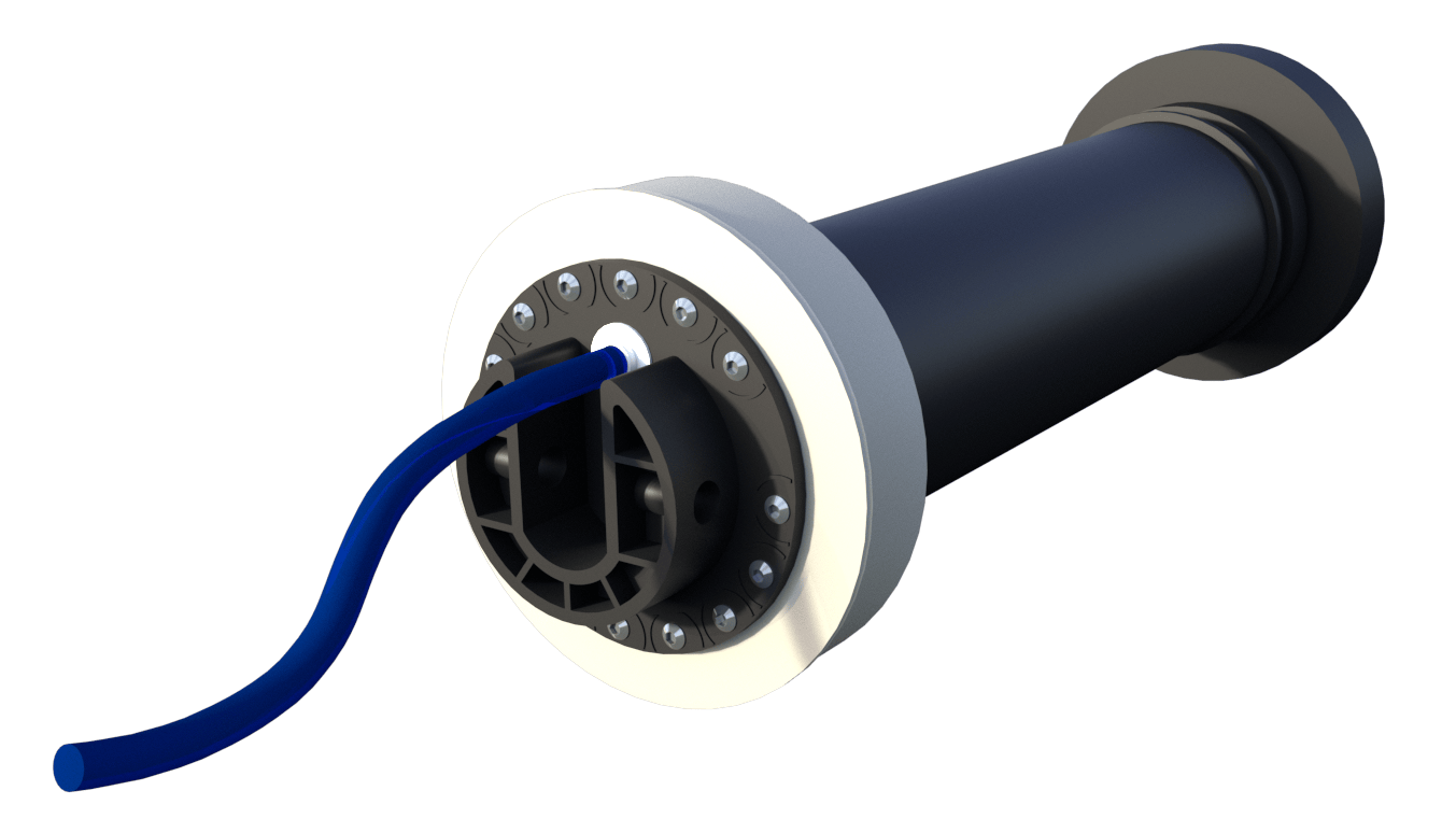 Kompletter Satz Flansche aus Edelstahl 316L mit Kabelführung durch die Beckenwand. Stehbolzen mit Gewinde, Länge 40mm.