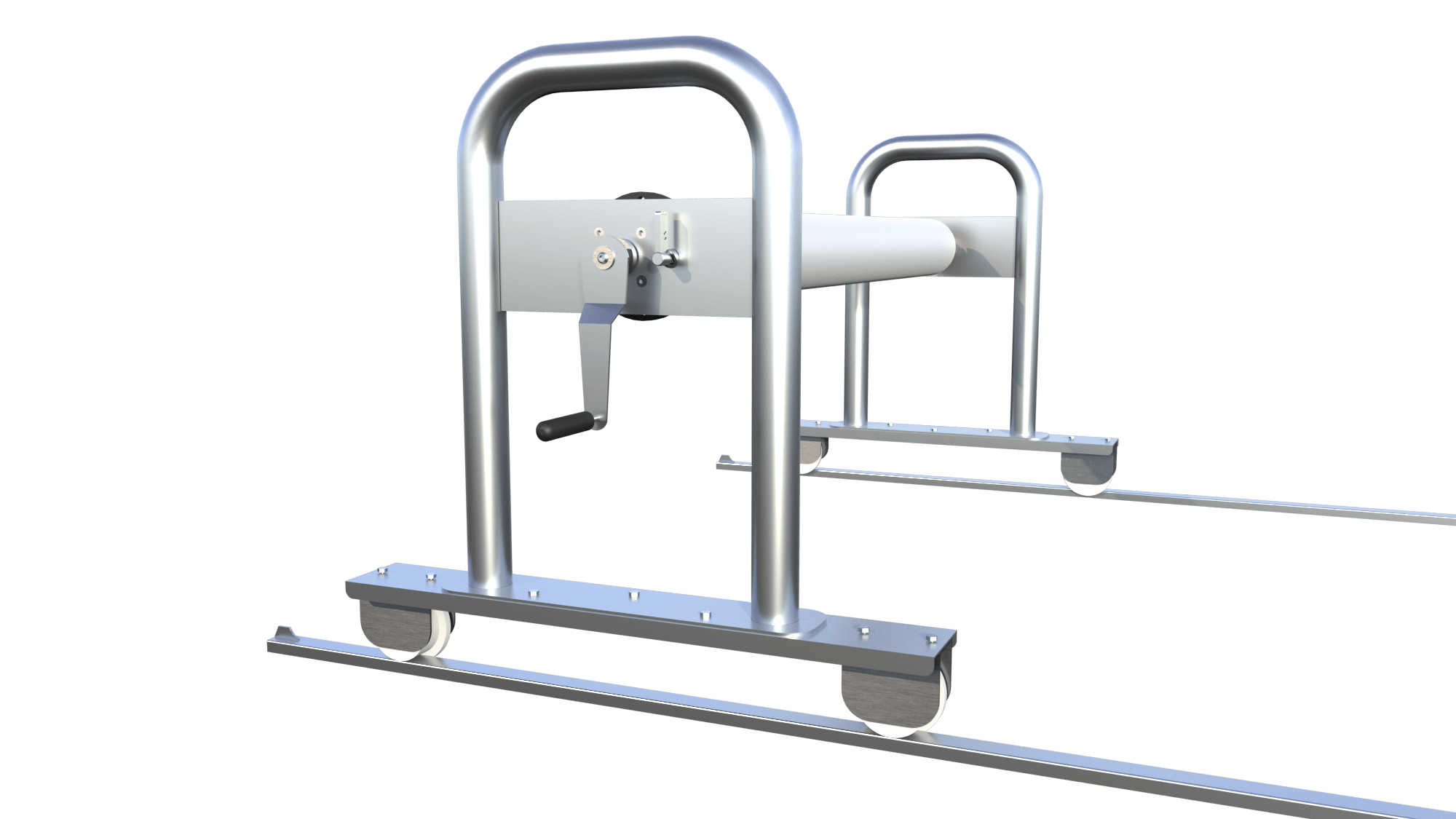 Stationäre Aufrollvorrichtung mit manuellem Antrieb für Schaumabdeckung THERMOFOAM